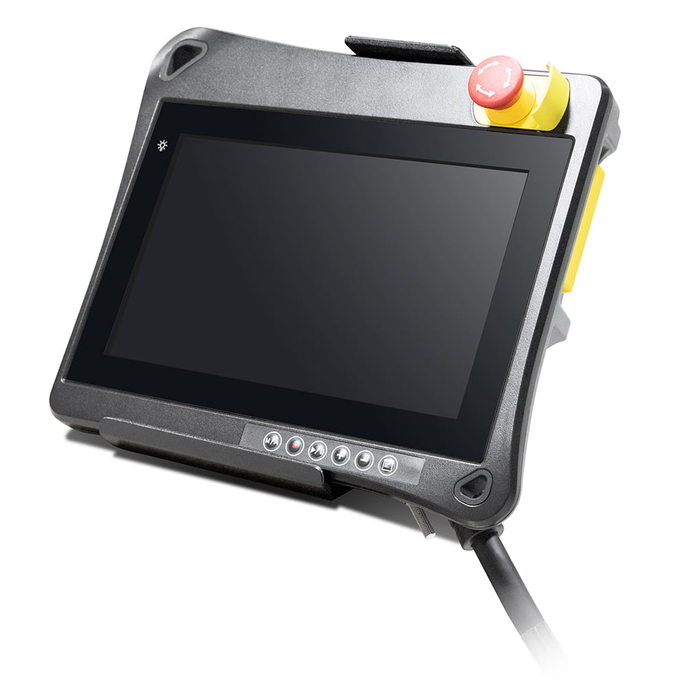 TP-100-1 es un Teach Pendant bien integrado con el robot TM, los usuarios pueden usar el TP-100-1 para operar directamente el robot TM. El TP-100-1 tiene un agarre ergonómico con elementos de seguridad, pantalla de 10.1" Panel de resolucion WXGA, y panel multi-touch. Esta unidad de control da el mayor comfort al uso y también funciona para zurdos.